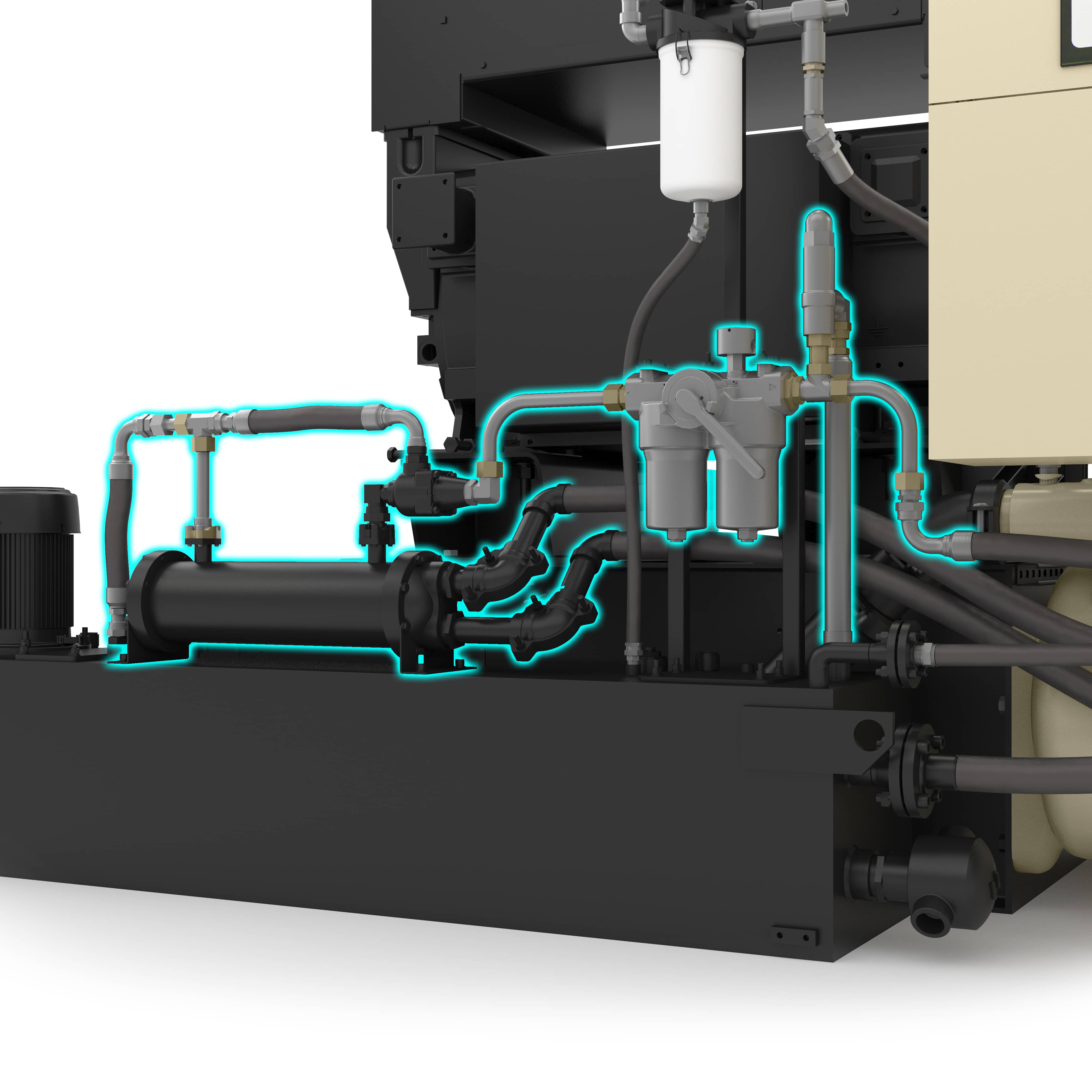 Os filtros de óleo duplex padrão maximizam o tempo de funcionamento, permitindo a manutenção rotineira do equipamento sem interromper a produção. Componentes do sistema localizados com a facilidade de inspeção e manutenção em mente.